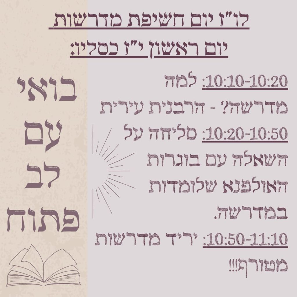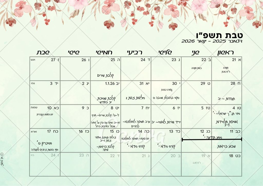 לוח פעילות חודש טבת